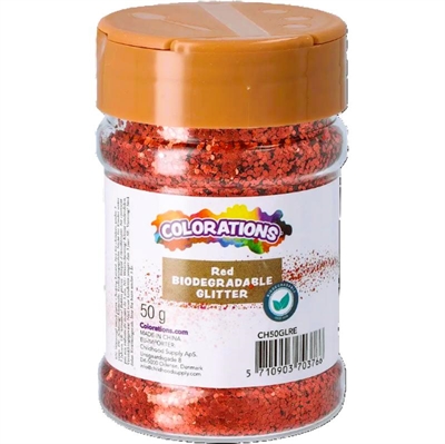 Lad det glitre i rødt med glimmer fremstillet af majsstivelse. Et mere miljøvenligt alternativ til plastglimmer, der egner sig perfekt til julehobby, kortfremstilling, dekorationer og andre kreative projekter. Emballage: 50g bøtte.