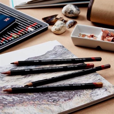 Derwent tinted charcoal er traditionel tegnekul med en smule farve. Blyanterne kan tværes ud og blandes.