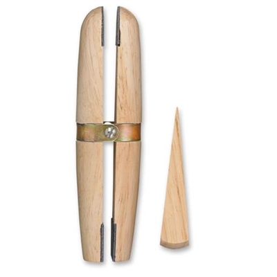 Af træ med skindbeklædte kæber som holder arbejdsstykket