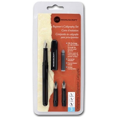 Gavesæt fra Manuscript der indeholder 4 penne, 5 pennespidser, 18 blækpatroner i farverne sort, blå, turkis, rosa og orange samt instruktionsbog på engelsk og øvelsespapir. Spidserne bredde: 0,85 mm (Fine), 1,1 mm (Medium), 1,35 mm (Broad), 1,6 mm (2B) og 2,8 mm (4B). Leveres i praktisk metalæske. Sættet er perfekt til nybegynderen, for det indeholder alt hvad du skal bruge for at komme i gang. Det er ligeledes velegnet til dem, der har været i gang et stykke tid og gerne vil prøve en anden farve eller pennebredde.