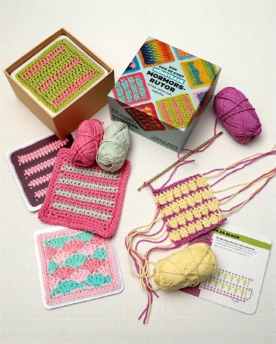 Udforsk farverige hækleopskrifter med denne inspirerende bog og kortsæt i ét!