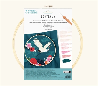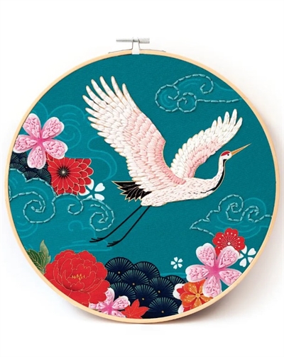Broder en elegant japansk trane med dette fine punch needle-sæt. Motivet er stilrent og roligt, inspireret af japansk billedkunst. Sættet indeholder en broderiram (25 cm), fortrykt stof, punch needle 2 mm.