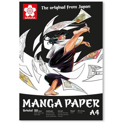 Manga Paper - Velegnet til tegning med f.eks. manga-teknikker på grund af sin glatte overflade. Papiret fungerer godt med Pigma-penne samt med blæk, tusch, airbrush, grafit, akvarel og gouache. 250 g/m2. 20 ark.