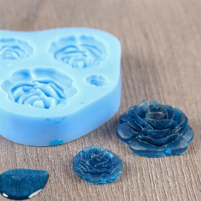 Skab fantastiske roser. Silikoneformen er elastisk så det er let at få den færdige rose ud. Støb roser i voks, med sæbemasse, resin, gips m.m. 4 stk roser i størrelserne Ø 33 mm, 27 mm, 21 mm, 10 mm.