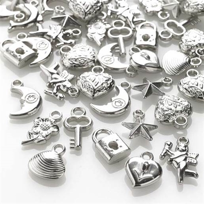 Af plast sølvfarvet. 10 forskellige motiver. Længde 15-20 mm.