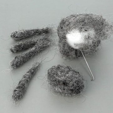 Nålefilt små og super søde lam af uld til påske. Lammene får et naturtro look eftersom de filtes af karteflor og rester af fåreskind. Sådan gør du:Æg af styropor og uldBrug et æg af styropor som grundform til lammets krop. Dæk hele ægget med uld og filt det fast med en filtenål. Som hoved nålefilter du en rund aflang kugle af uld. Sørg for at filte den så den bliver både hård og stabil. Filt ligeledes fire ben. Disse bør også være hårdt filtede, således at de kan stå godt fast. Skær uld afBrug en skarp hobbykniv til at skære uld fra fåreskindsresterne og nålefilt derefter ulden fast i et lag over hele lammets krop. Filt derefter hovedet og benene fast. Filt en lille hale og to ører af karteflor, og filt ørerne fast på hovedet. Fortsæt derefter med at ”opbygge” lammet ved at filte afskårne uldtotter fast mod kroppen, på hovedet og rundt om ørerne. Den afklippede uld bør ikke nålefiltes så hårdt fast. Sørg i stedet for at bevare nogle af uldens naturlige bølger og krøller for at skabe et naturligt look. (Bemærk at fåreskindsresterne fås i forskellige farver og nuancer der kan variere fra pakke til pakke. Du kan derfor med fordel blande afskåren uld i forskellige nuancer for at få et fint og naturligt resultat). Mund, næse og øjneBrug sort uldgarn til at lave næse og mund. Du kan eventuelt dele tykkere garn og filte næse og mund fast på lammets hoved. Sy derefter to sorte perler fast som øjne. Sy med tynd sytråd i samme farve som lammehovedet. |